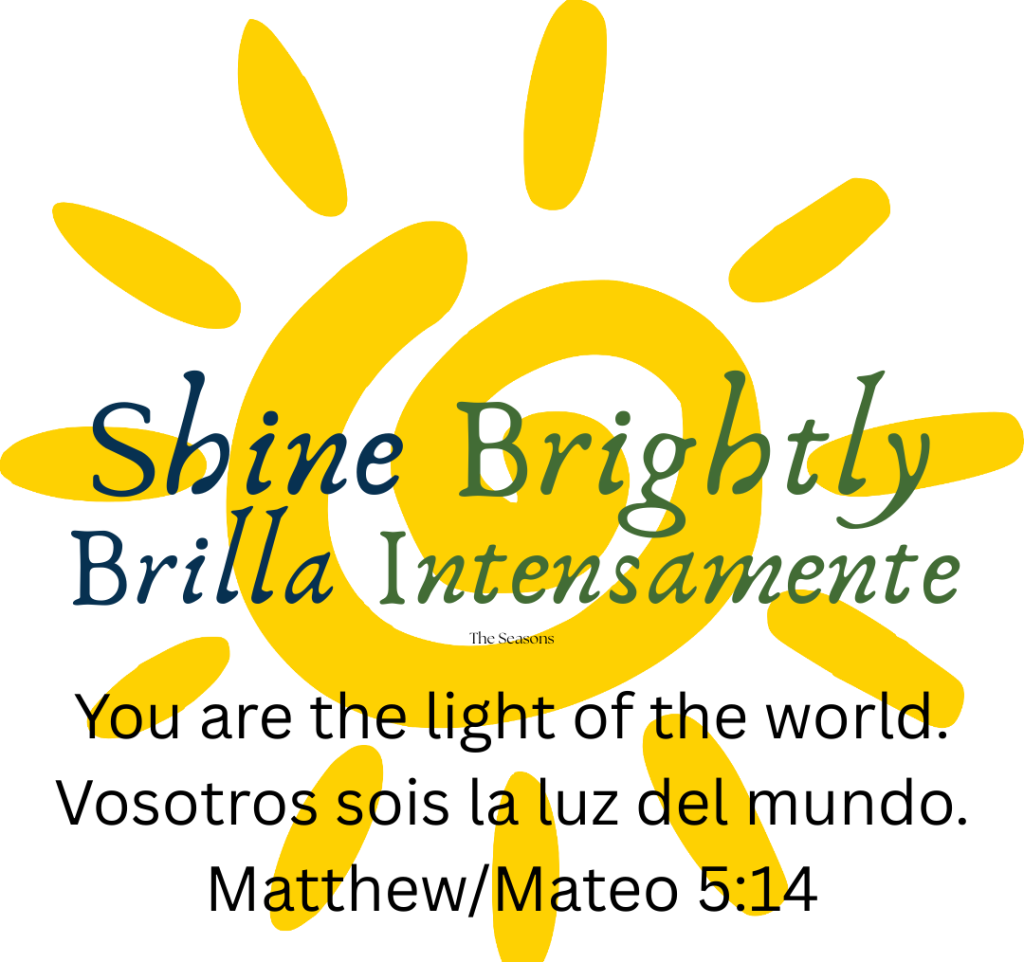 This week our theme is “Shine Brightly.” based on Matthew 5:13-16/ Mateo 5:13-16